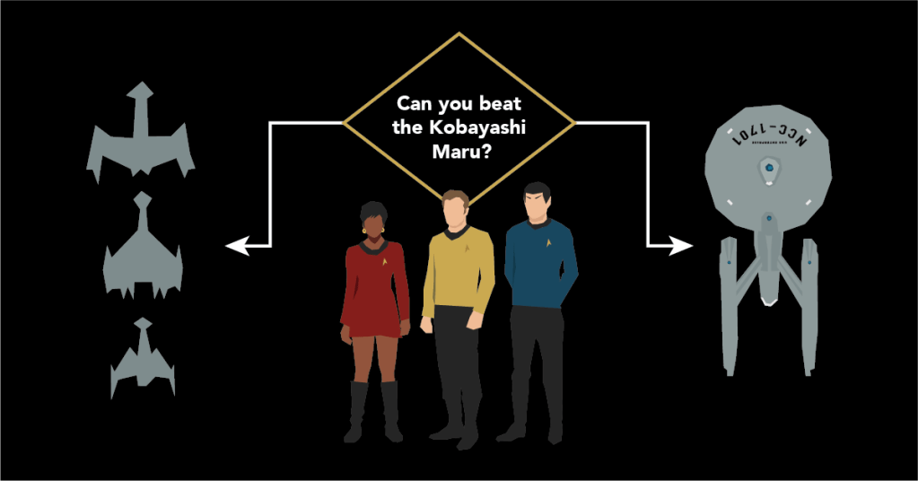 Tutti i fan di Star Trek conoscono il test della Kobayashi Maru. Per tutti gli altri, si tratta di una simulazione che i cadetti della Flotta Stellare devono sostenere, e che è impossibile da superare con successo: un’ astronave da carico, la Kobayashi Maru, è in avaria in una zona controllata dai nemici e la nave spaziale della flotta riceve un SOS. Il capitano della nave deve scegliere: