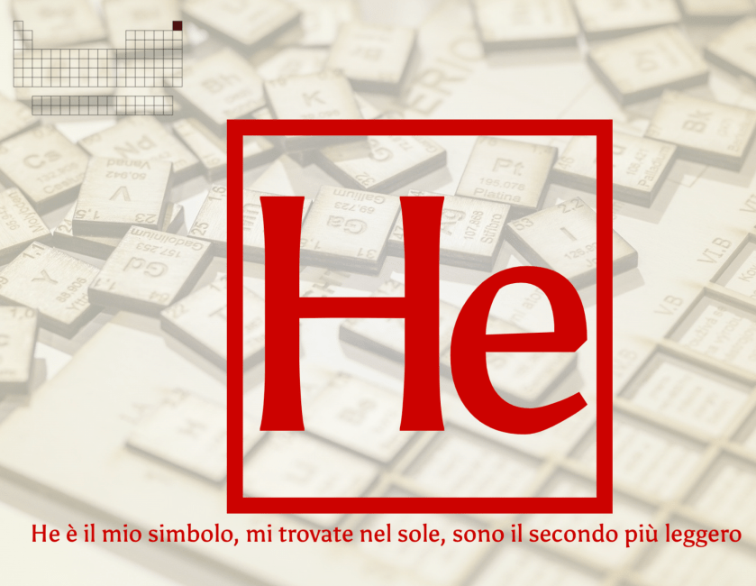 Infatti corrispondeva a me, l’elio, il secondo elemento più abbondante nell’universo, e il secondo più leggero. E il primo a essere scoperto al di fuori del pianeta Terra.